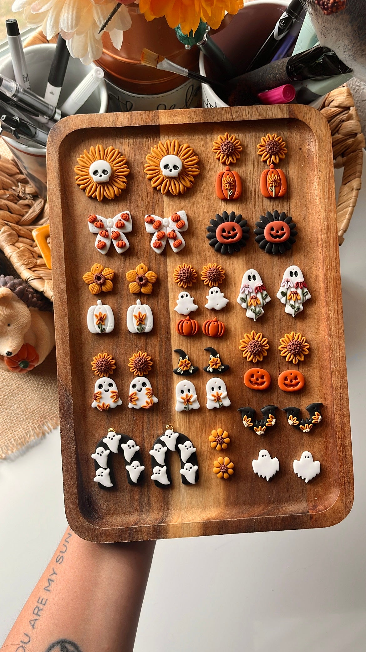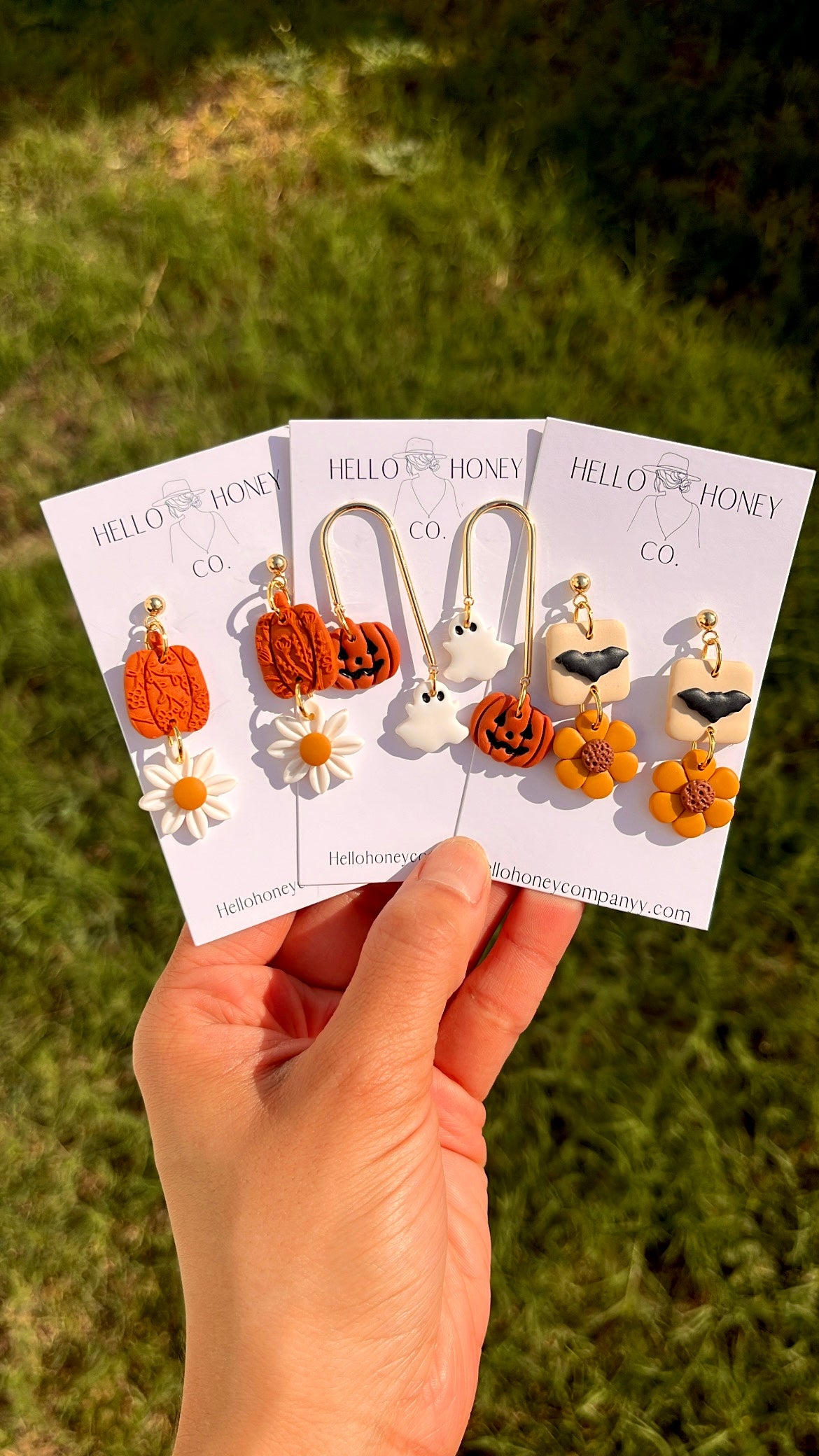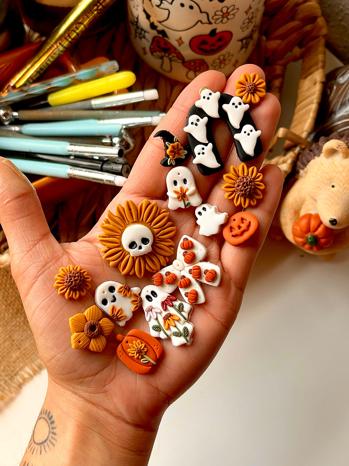 Sunflowers and Halloween meet Clay earrings🌻🍂👻 spooky floral collection with warm colors...