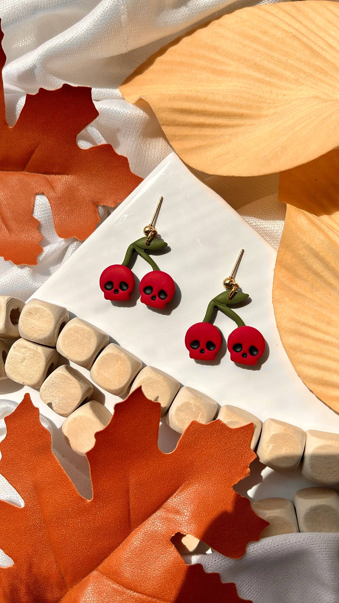 Bright Red Skulls on a cherry stem 🍒💀❤️