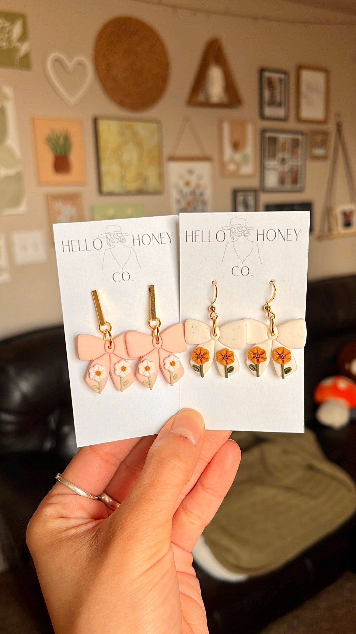 Pale pink bows with DAudie’s and Speckled white bows with Sunflowers 🌻🤍🎀Â