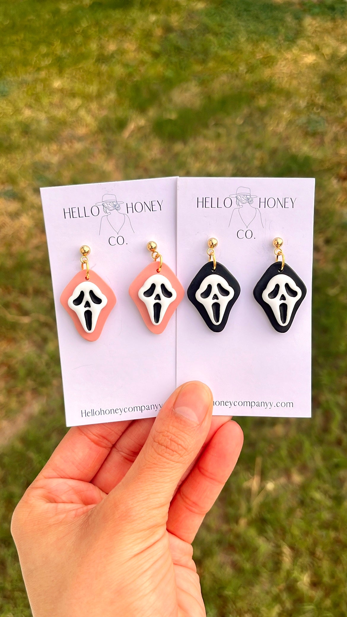 Ghost face inspired earrings! Pink and black colored 🖤🩷👻