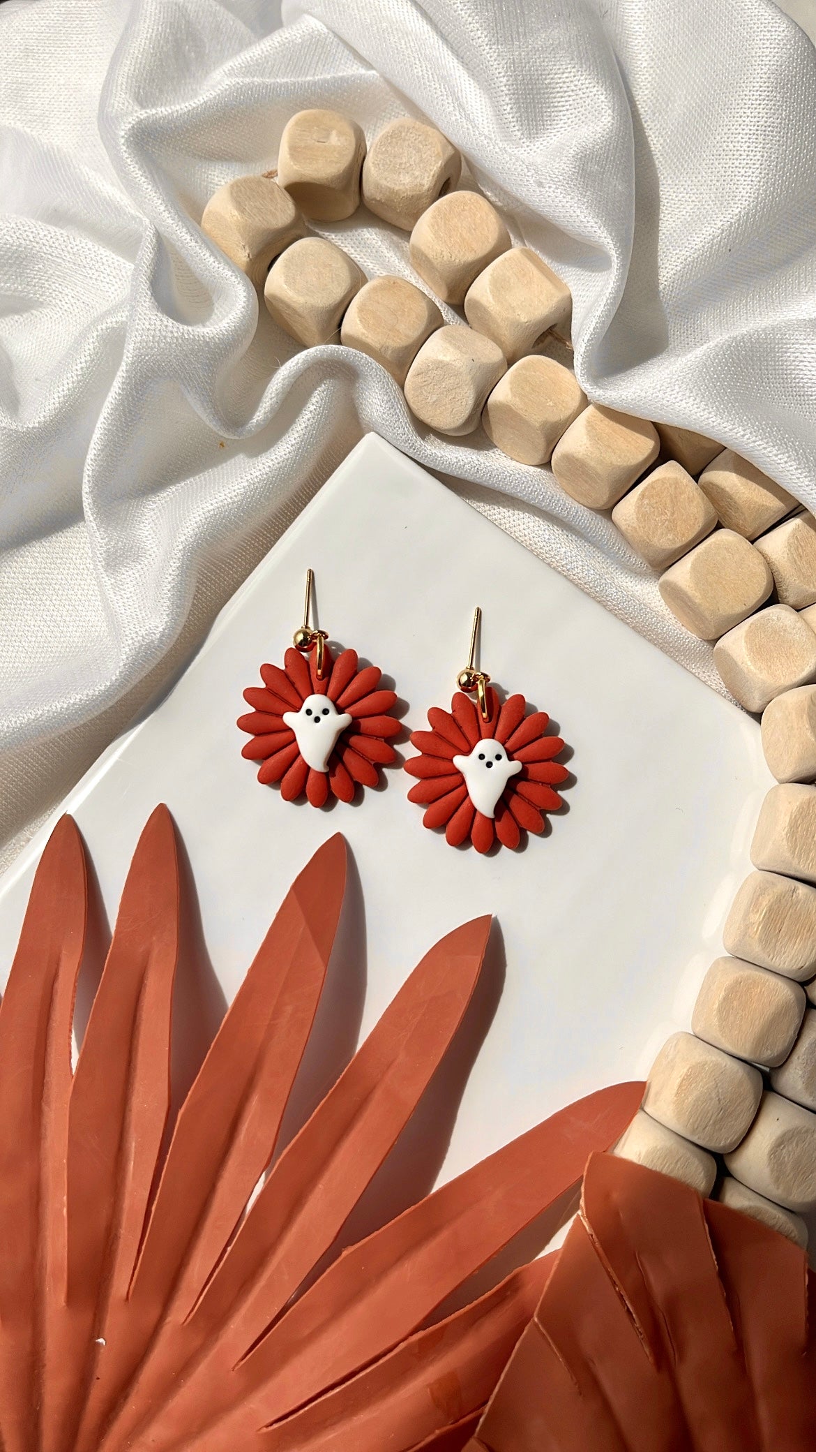 Red Orange Flowers with a mini ghost in the middle👻❤️🧡