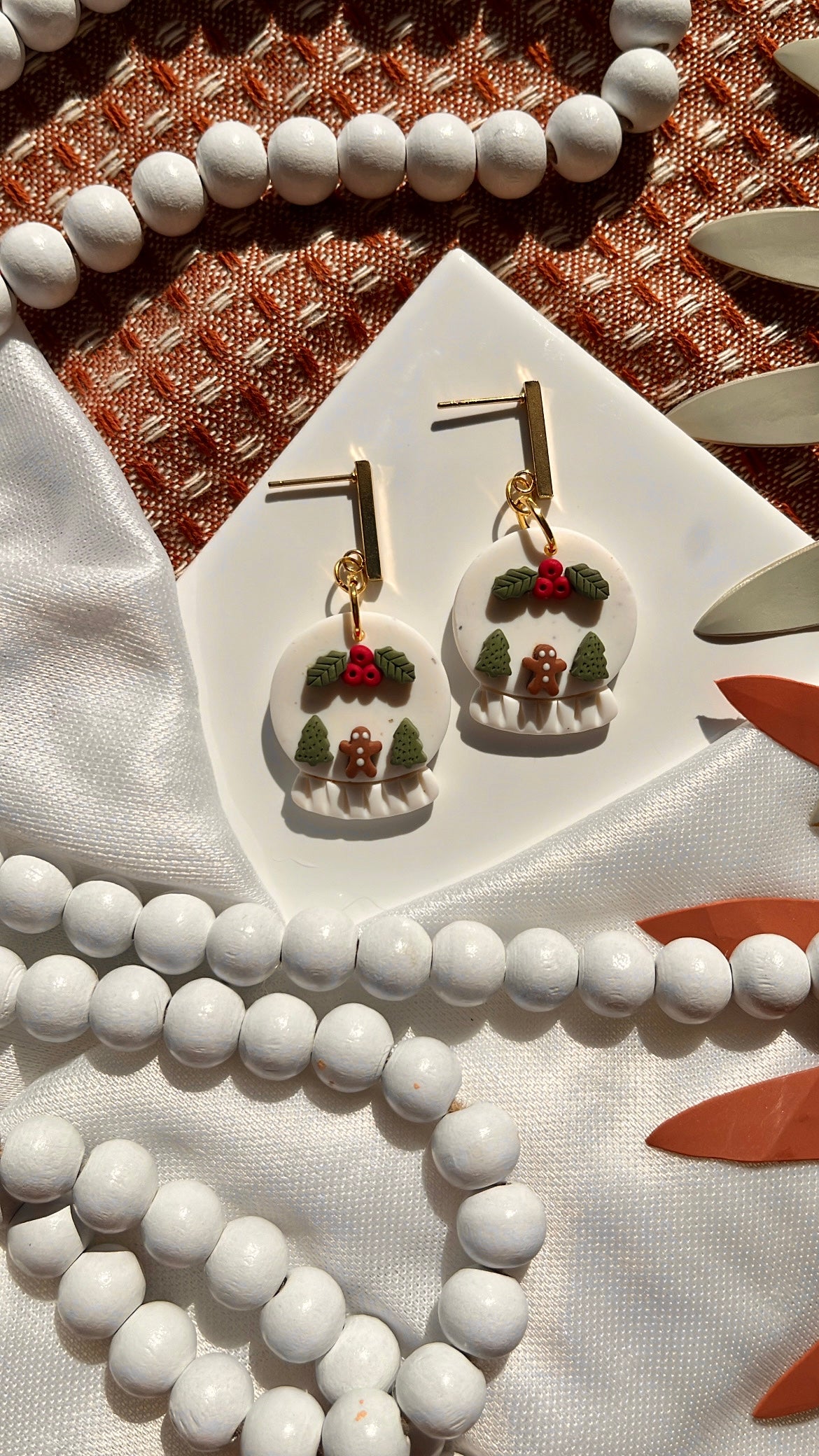 Speckled White Snowglobes with mini gingerbread men, mini trees and a mistletoe charm🌿❤️🎄