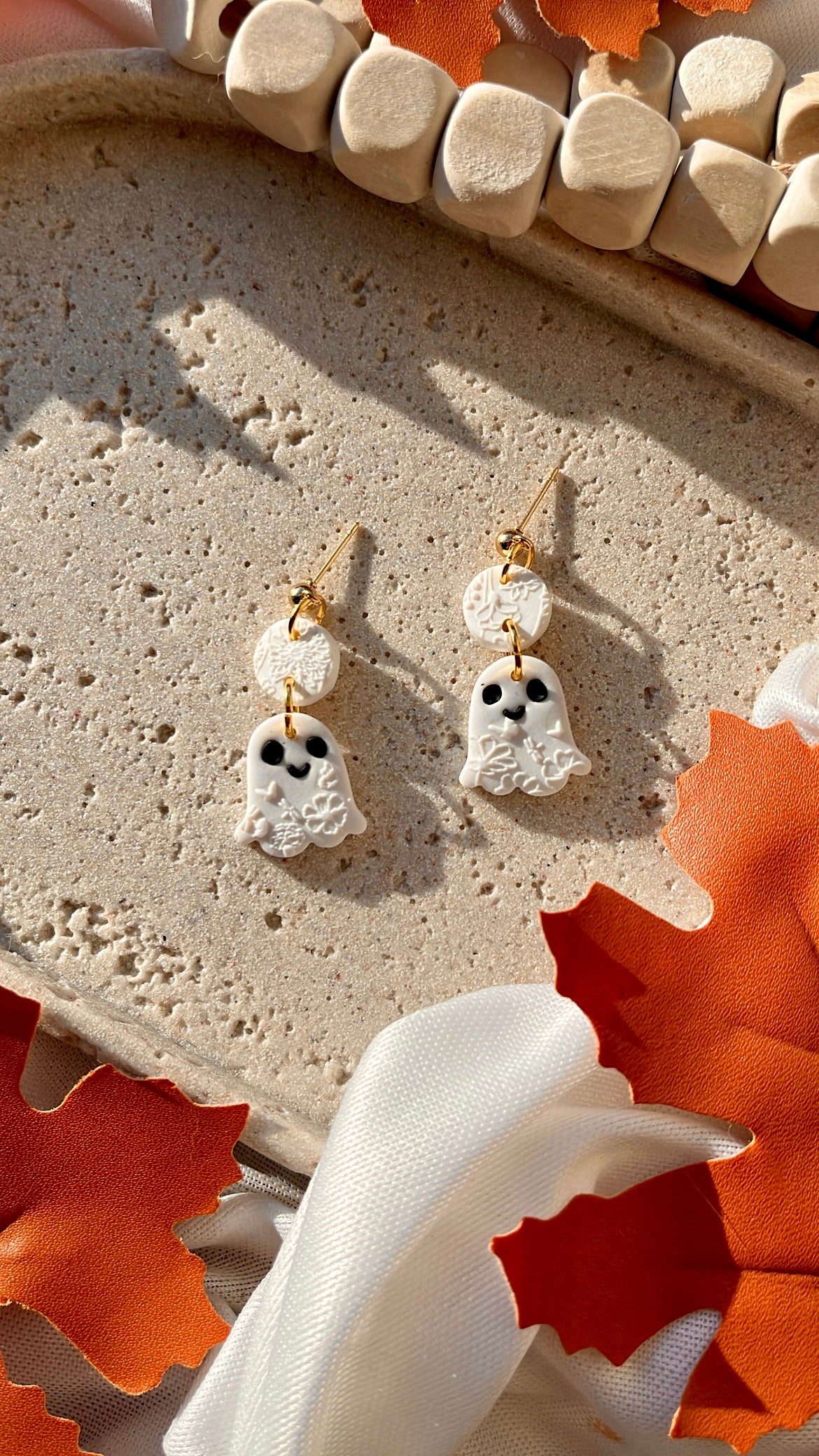 Speckled white textured ghosts with flower textured circle👻🤍✨