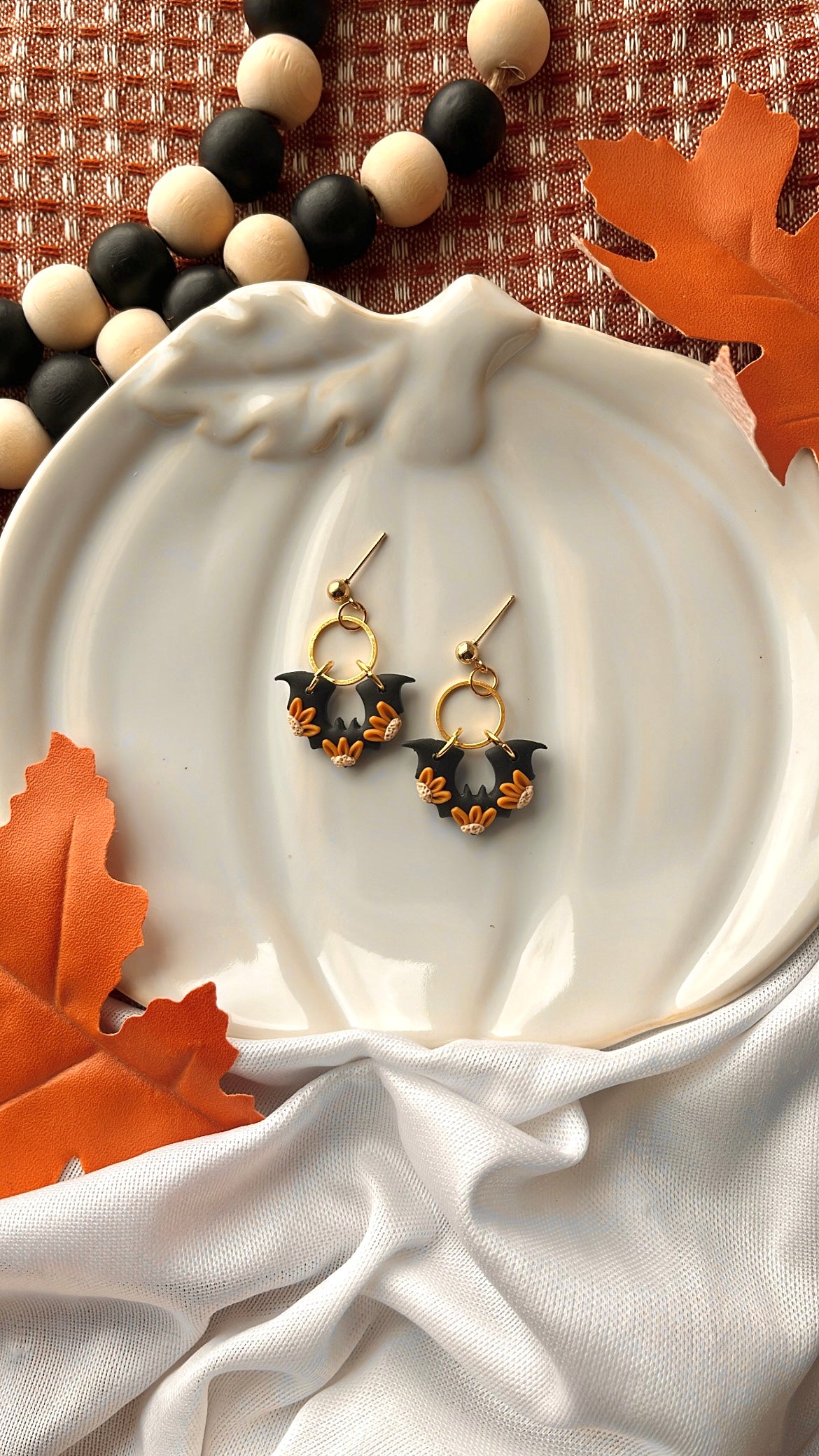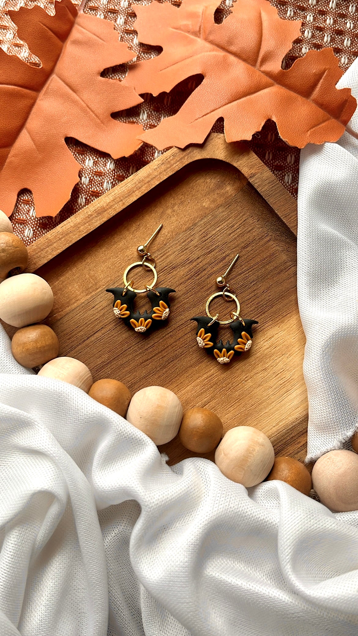 Black bats with mini sunflower details + brass circle to add length 🦇🌻🍂
