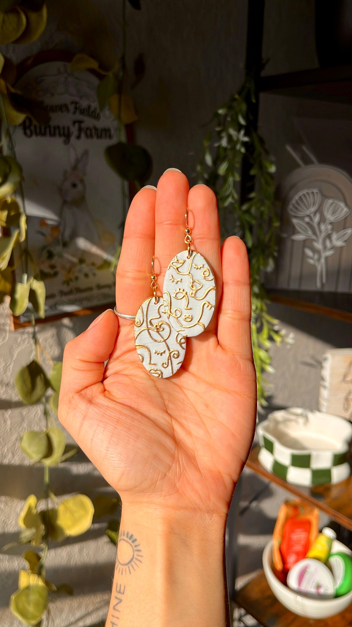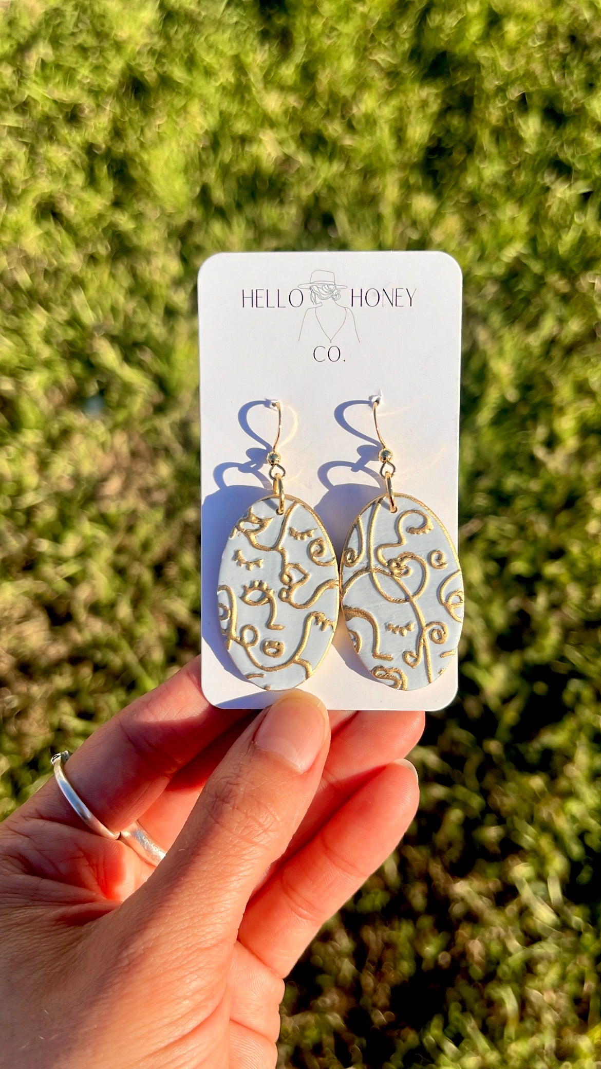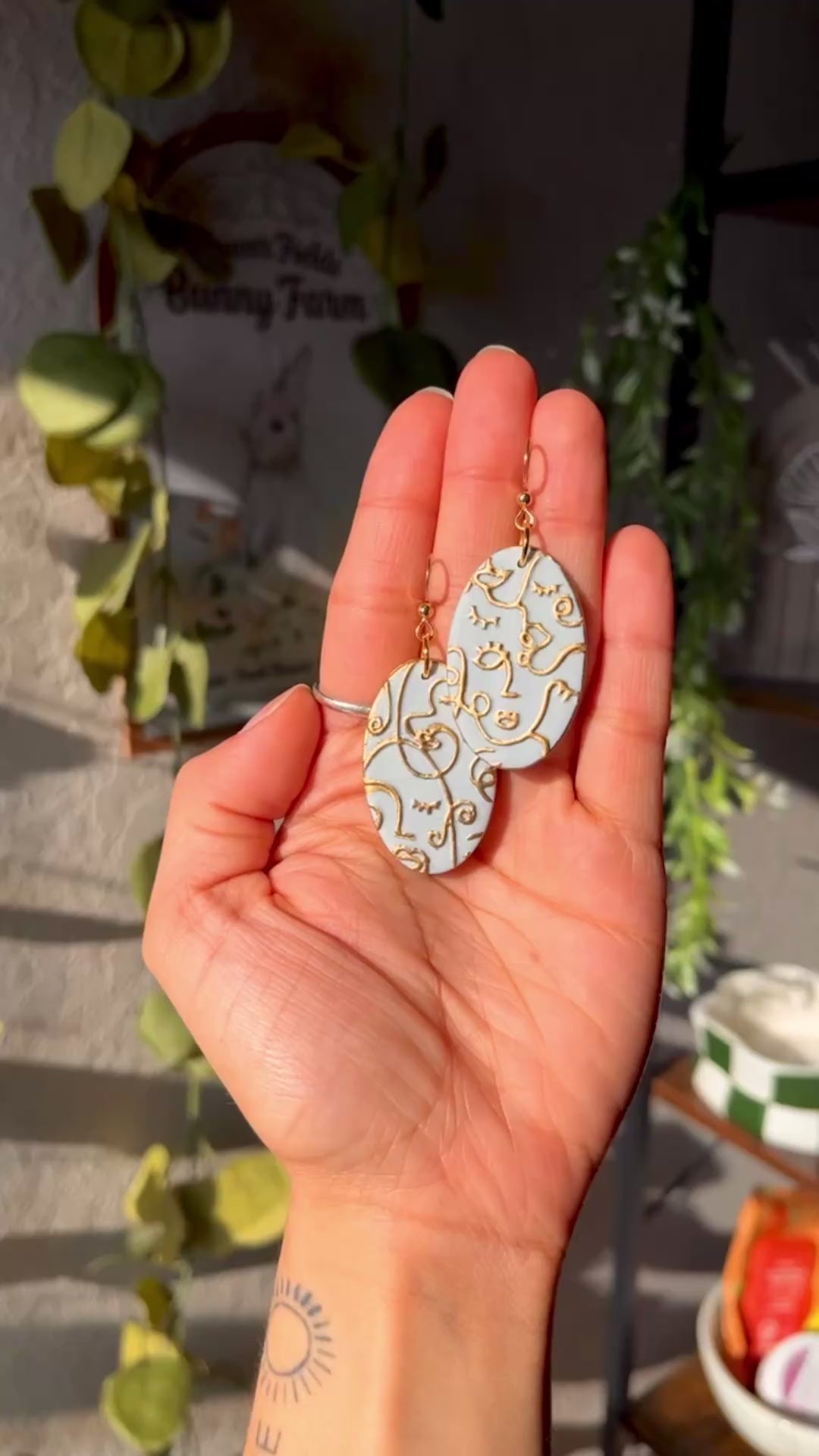 Baby Blue ovals with gold abstract faces 🩵✨