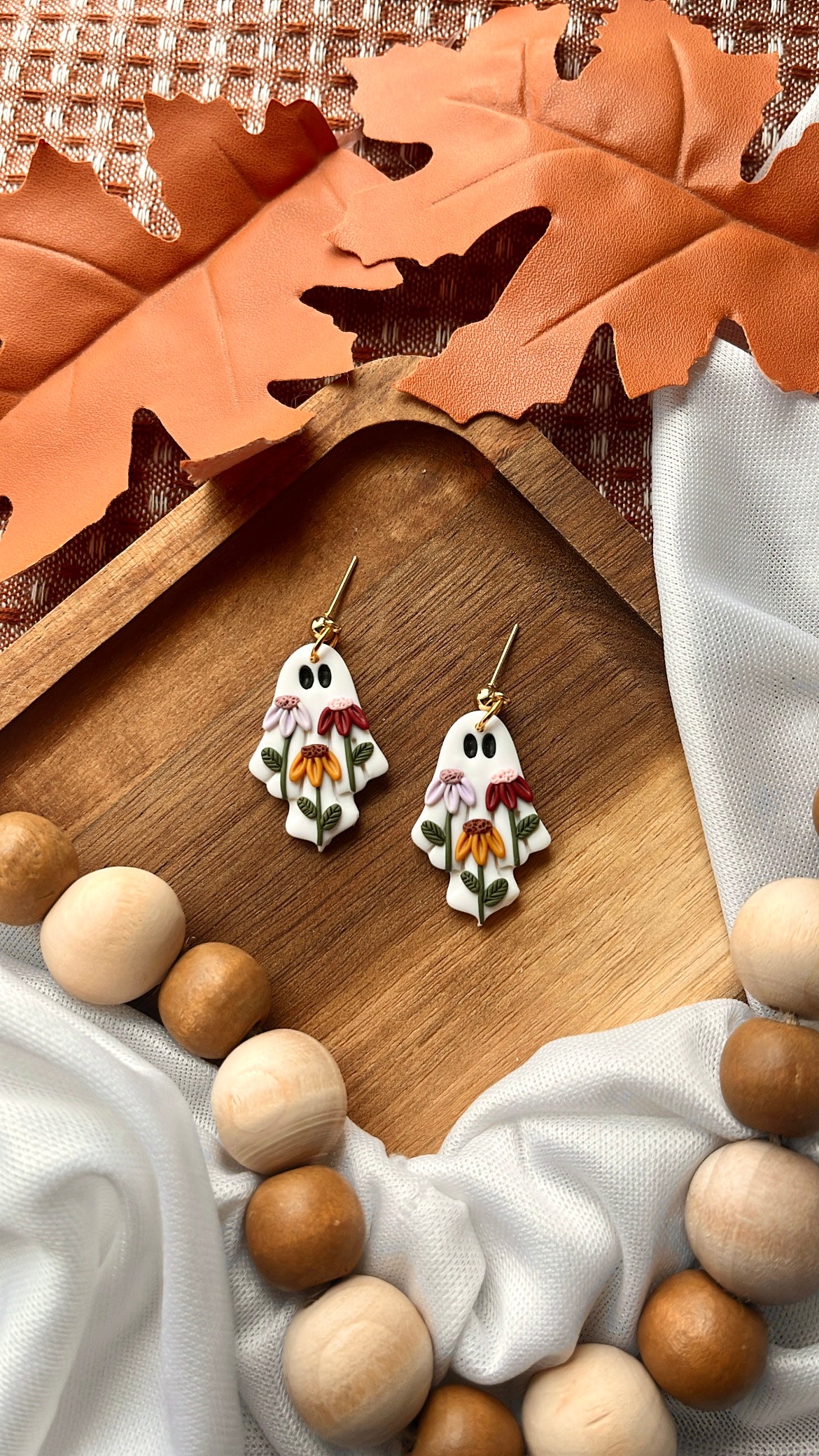 Warm colored floral ghosties with stem and detailed leaves👻🌸🪻🌿